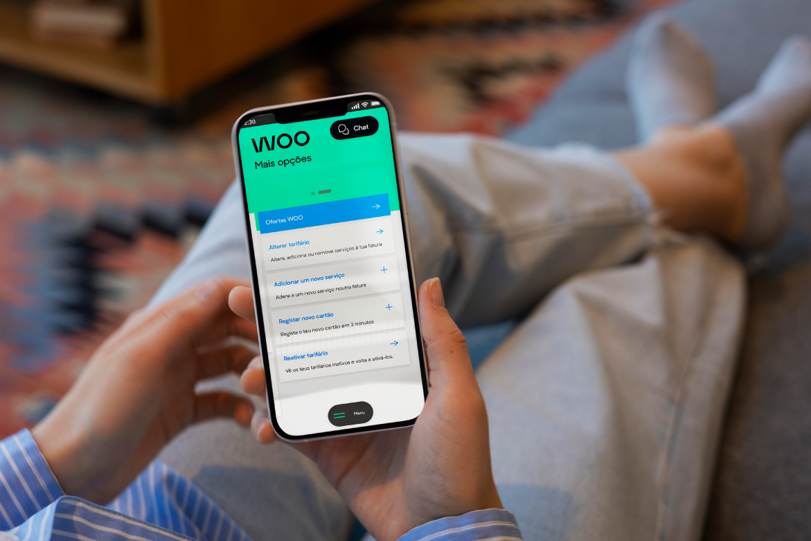 Na WOO consegues gerir tudo na app: alterar o método de pagamento (MB Way, débito direto, cartão), ajustar o tarifário móvel ou acompanhar o consumo de dados móveis. Sem chamadas intermináveis para apoio ao cliente, só abrir a app e tratar do assunto.